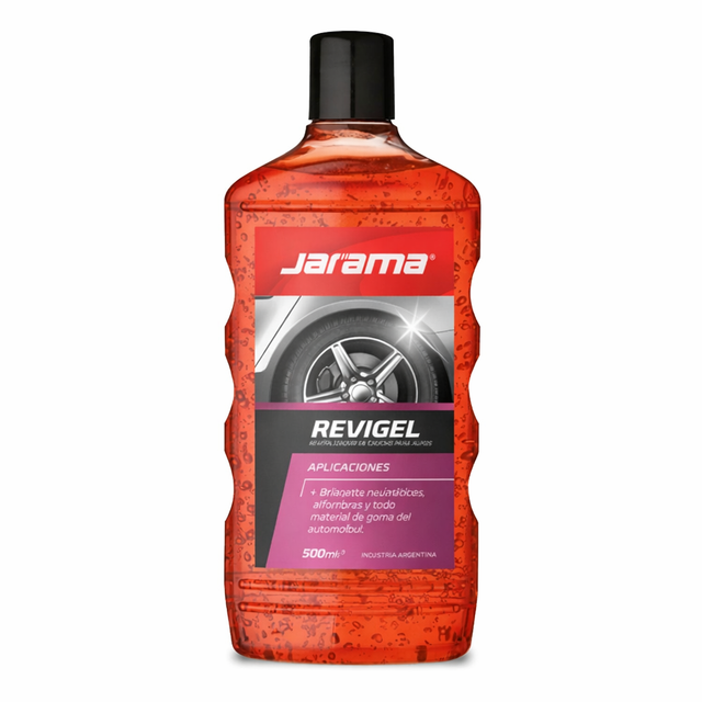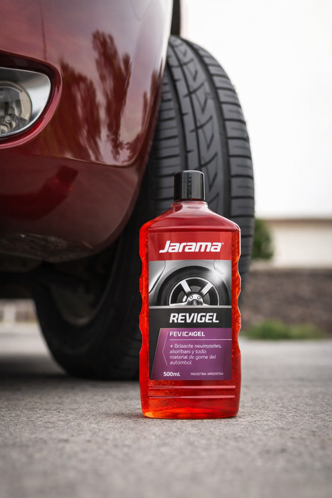 Jarama Revigel es un gel de alto rendimiento que restaura el color original y el brillo de gomas, neumáticos y superficies de caucho.